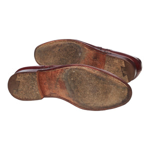 Crockett & Jones manufactured for Gordon Scott 'Plymouth' cap toe oxford semi brogues in burgundy calf. In very good used condition, showing moderate signs of wear.