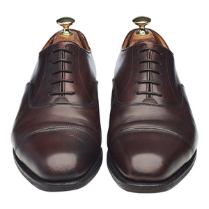 Tricker's 'Regent' cap toe oxford in dark brown calf. In excellent used condition, showing minor signs of wear.