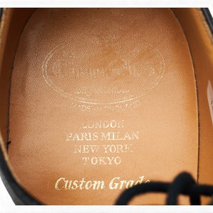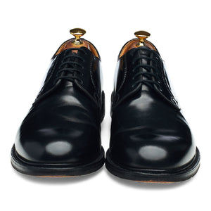 Church's 'Shannon' plain toe derby in black polished calf. In excellent used condition, showing minor signs of wear.