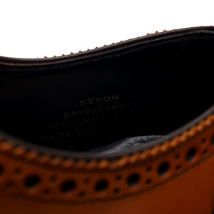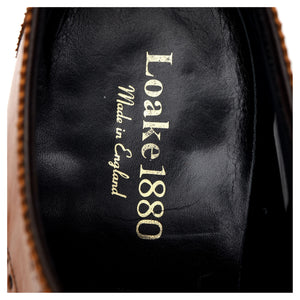 Loake 1880 'Byron' cap toe derby, with broguing, in tan burnished calf. In excellent used condition.