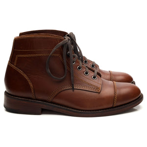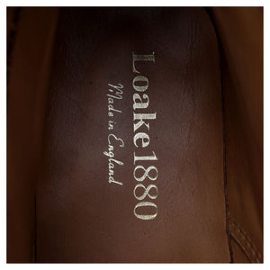 Loake 1880 'Samuel' cap toe derby boots in brown calf. In excellent used condition, showing minor signs of wear.