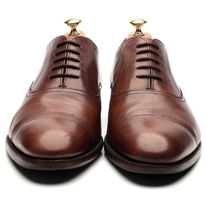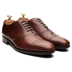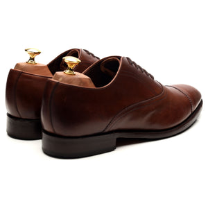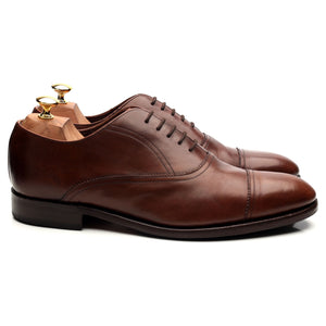 Barker 'Malvern' cap toe oxford in brown calf. In very good used condition, with scratch to the toe box and moderate signs of wear.