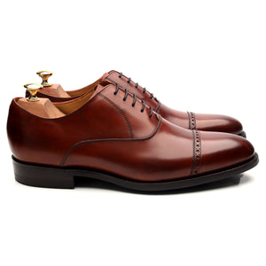 Barker 'Burford' oxford quarter brogue in Rosewood brown calf.