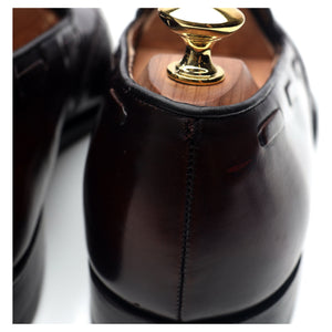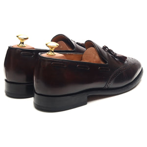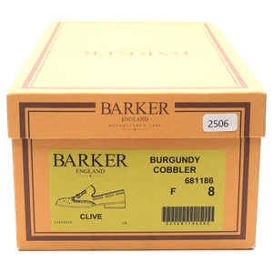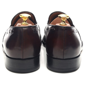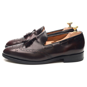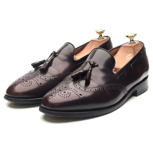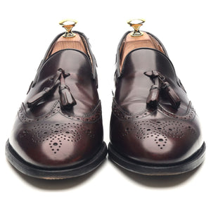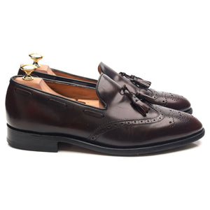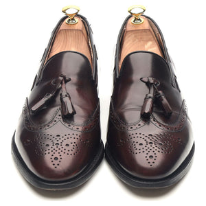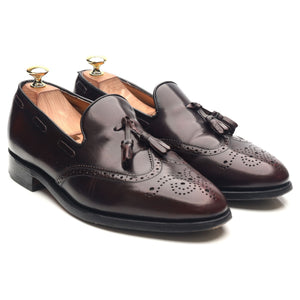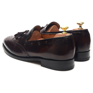 Barker 'Clive' tassel loafer in burgundy polished calf. In very good used condition, showing moderate signs of wear. There a couple of failed stitches on right counter as shown.