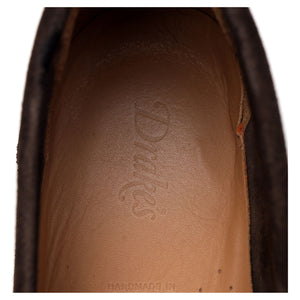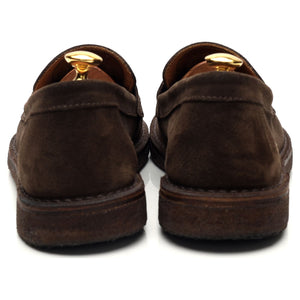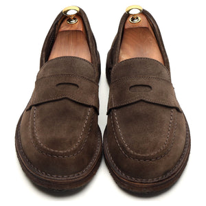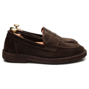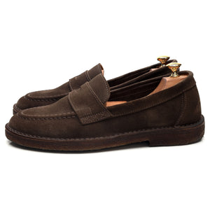 Drake's penny loafer in brown suede. In excellent used condition, showing minor signs of wear.