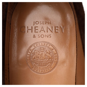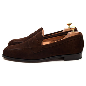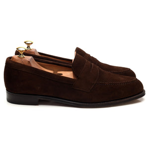 Cheaney 'Cannon' penny loafers in brown suede. In excellent used condition, showing minor signs of wear.