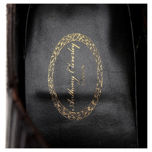 Anthony Cleverley 'Churchill' lazyman slip-on brogue in brown museum calf. In excellent condition.