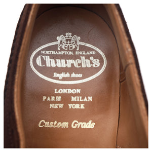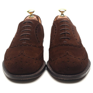 Church's 'Chetwynd' brogue in dark brown suede. In excellent used condition showing minor signs of wear.
