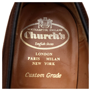 Church's 'Salisbury' penny loafers in brown suede. In excellent used condition, with minor signs of wear.