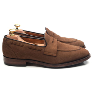 Church's 'Widnes' penny loafers in snuff brown suede. In very good used condition showing some minor fading.