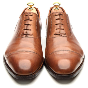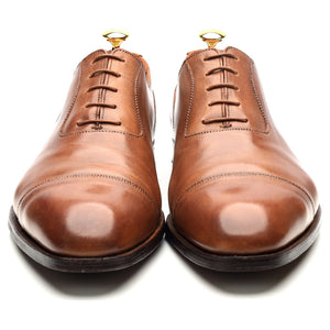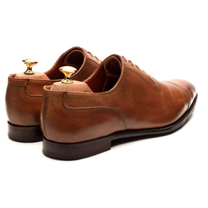 Crockett & Jones 'Egerton' cap toe oxford in tan brown antique calf. In excellent used condition, showing minor signs of wear.