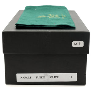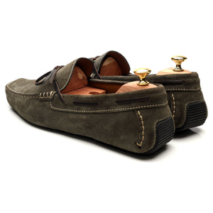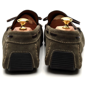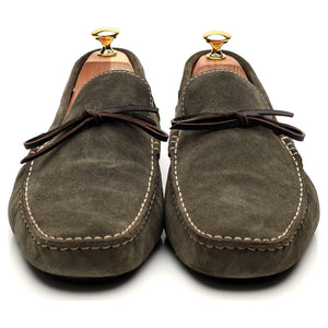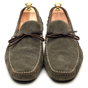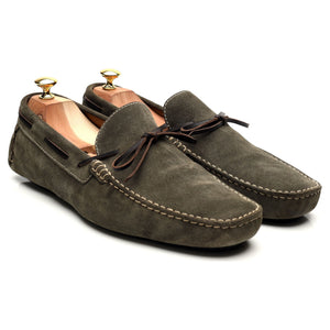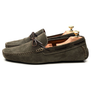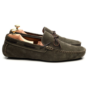 Crockett & Jones 'Napoli' driving loafer shoes in Earth green suede. In excellent used condition.