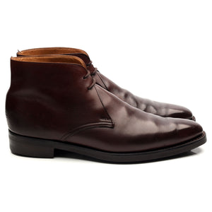 Crockett & Jones 'Tetbury' chukka boots in dark brown burnished calf. In very good used condition, with moderate signs of wear, scuffing to the heels and toe boxes. Note. these have been resoled.