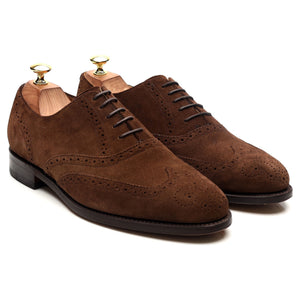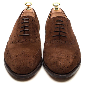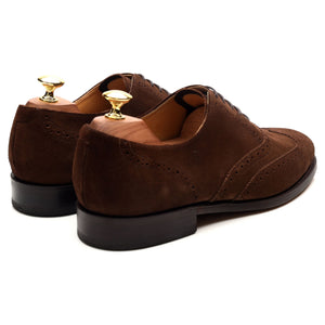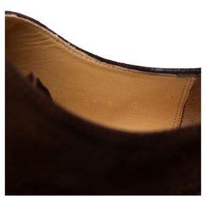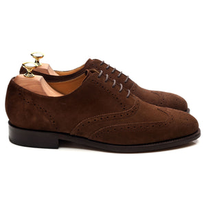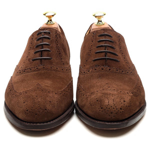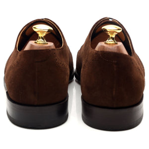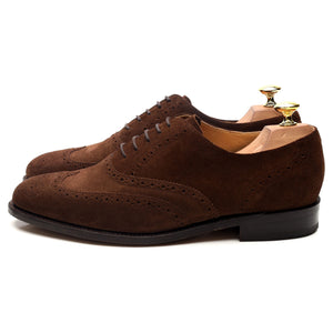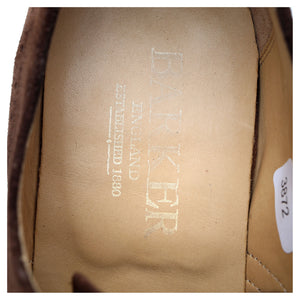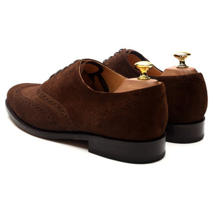 Barker 'Albert' brogues in brown suede. In excellent condition. Note, these are marked as 'imperfect', the eyelets on the left shoe are spaced slightly further apart than on the right.
