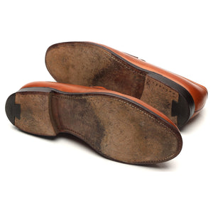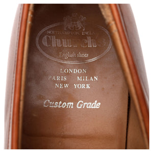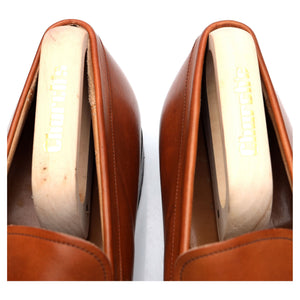 Church's 'Darwin' split toe penny loafers in 'chestnut' tan brown Nevada calf. In very good used condition, showing moderate signs of wear.
