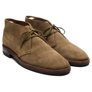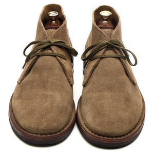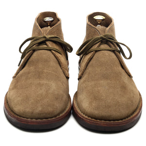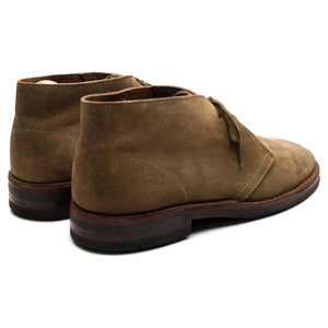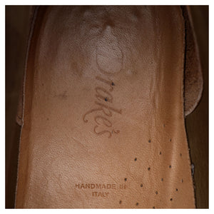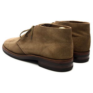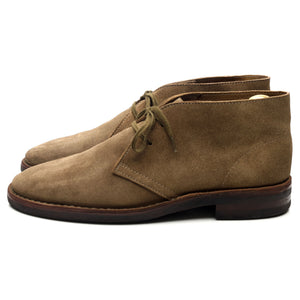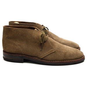 Drake's 'Clifford' unlined chukka boots in taupe brown suede. In excellent used condition, showing minor signs of wear.