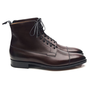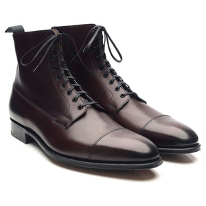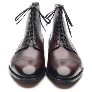Edward Green 'Albion' cap toe boots in night shade burgundy antique calf.