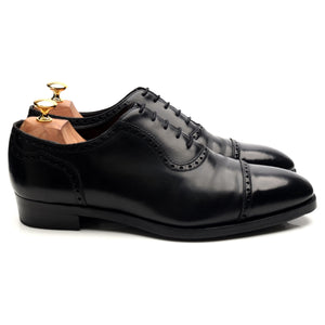 Gaziano & Girling 'St. James II' semi brogue oxford in black calf. In excellent used condition, showing minor signs of wear. Note, these have been resoled.