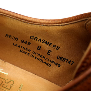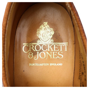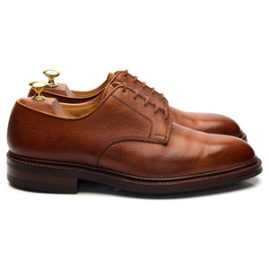 Crockett & Jones 'Grasmere' plain toe derby in tan brown scotch grain calf. In excellent used condition, showing minor signs of wear.