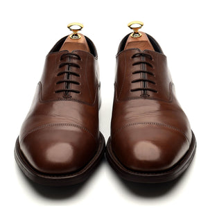 Herring manufactured by Loake 'Knightsbridge' cap toe oxford in Tobacco brown calf. In excellent used condition, with minor creasing across the vamps.