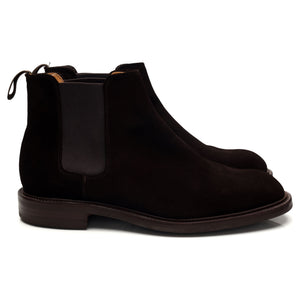 Cheaney 'Jeremy' Chelsea boots in dark brown suede. In excellent used condition, showing minor signs of wear.
