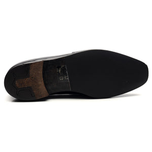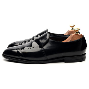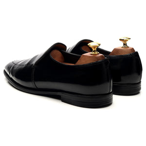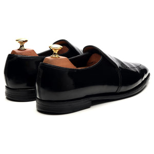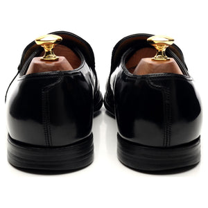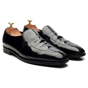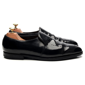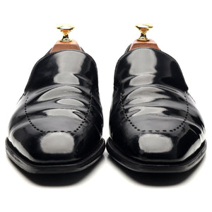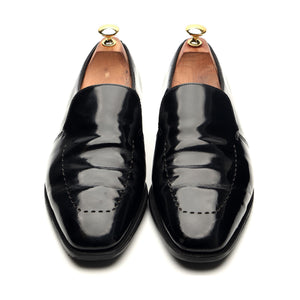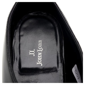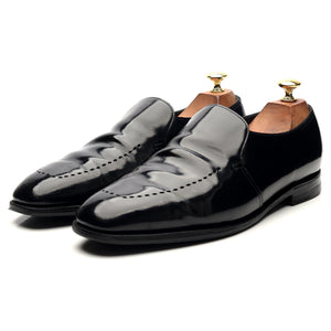 John Lobb 'Jive' slip on loafer in black patent leather. In very good used condition, with moderate signs of wear, scuffs and marks of discoloration.