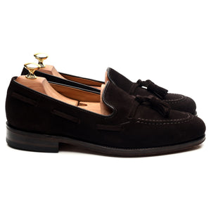 Loake's 'Lincoln' tassel loafer in dark brown choc suede. In excellent used condition.