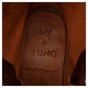 Lof & Tung 'Bridger' split toe boots in Chestnut brown Kudu leather. In excellent used condition, showing minor signs of wear.