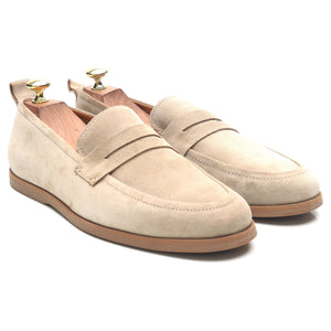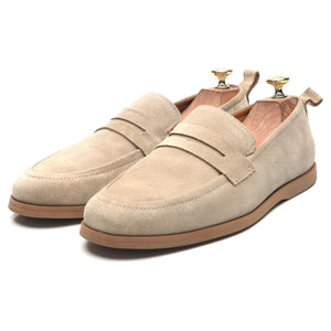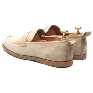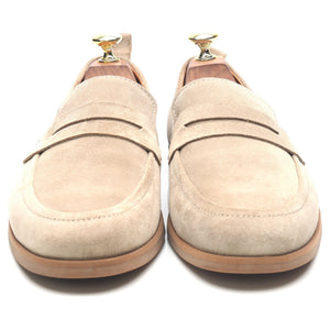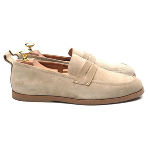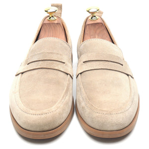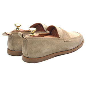 Mr P. penny loafers in taupe beige suede. In excellent condition.