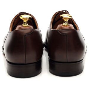 Crockett & Jones manufactured for Peal & Co cap toe oxford, with broguing, in dark brown calf. In excellent used condition, showing minor signs of wear.
