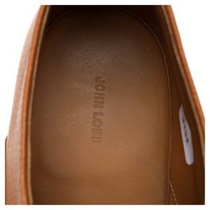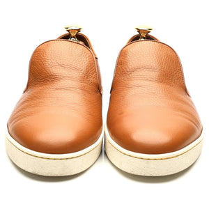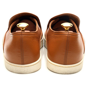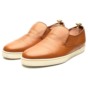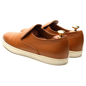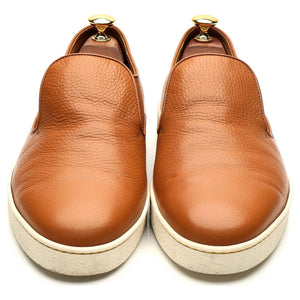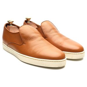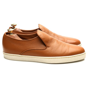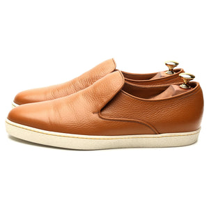 John Lobb 'Haven' slip-on sneakers in tan brown grain calf. In excellent used condition, showing minor signs of wear. Note, there is a small scratch that has been repaired as shown.