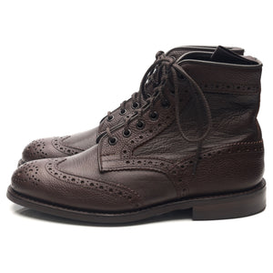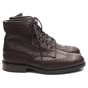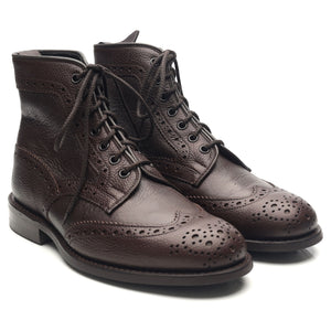 Tricker's 'Adstone' brogue boots in soft dark brown scotch grain Olivvia leather and Olivvia Deer Skin.