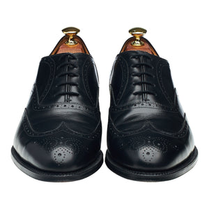 Church's oxford wingtip brogues in black calf. In excellent used condition, showing minor signs of wear and light creasing across the vamps.