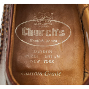 Church's 'Burwood' oxford wingtip brogues in browncalf. In excellent used condition, showing minor signs of wear and light creasing to the uppers.