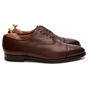 Crockett & Jones 'Connaught' cap toe oxford in brown burnished calf. In excellent used condition, showing minor signs of wear.