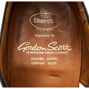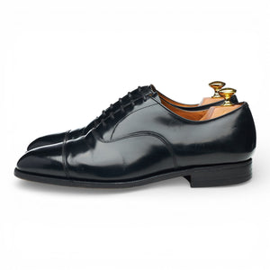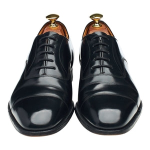 Church's manufactured for Gordon Scott 'Morgan' cap toe oxford in black polished calf. In excellent used condition, showing minor signs of wear.