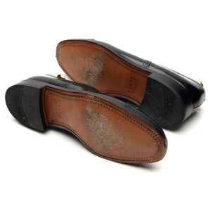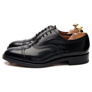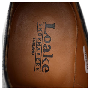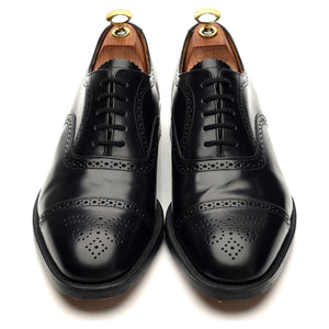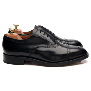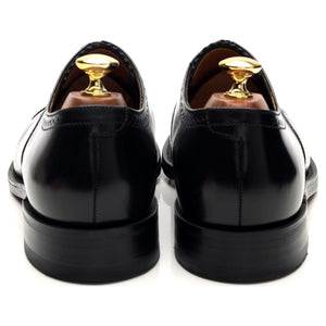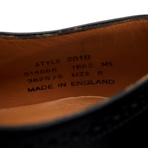 Loake '201B' cap toe oxford semi brogue in black polished calf. In excellent used condition, showing minor signs of wear and with some light creasing across the vamps.