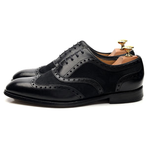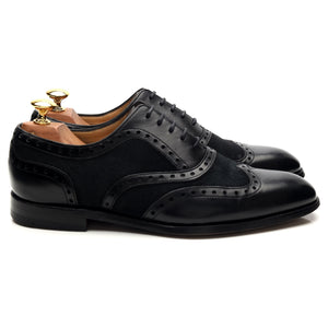 Barker oxford brogues in black calf and black suede. In excellent used condition, showing minor signs of wear.