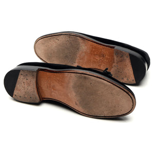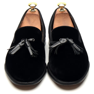 Grenson tassel loafers in black velvet tassel loafers. In excellent used condition, with minor signs of wear.