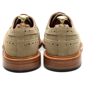 Tricker's derby brogue in beige 'Chino' repello suede.