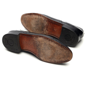 Barker 'Alfred' cap toe oxford semi brogues in black polished calf. In very good used condition, showing moderate signs of wear and light creasing across the vamps.