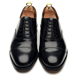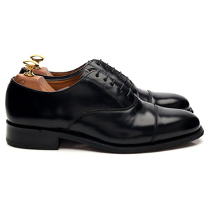 Barker 'Arnold' cap toe oxford in black polished calf. In excellent used condition, showing minor signs of wear.