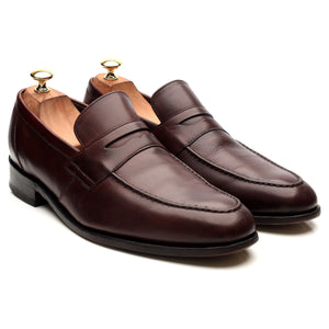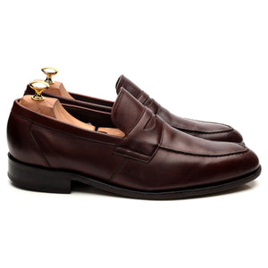 Barker penny loafer in burgundy calf. In excellent used condition, showing minor signs of wear.