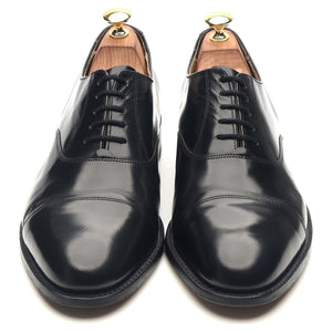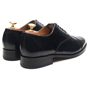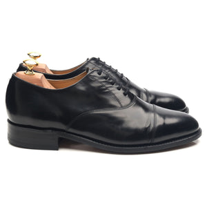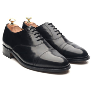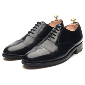 Barker 'Arnold' cap toe oxford in black hi-shine calf. In excellent used condition.