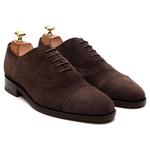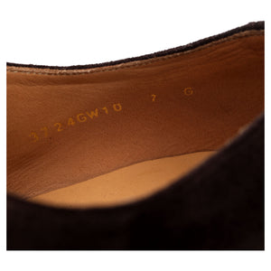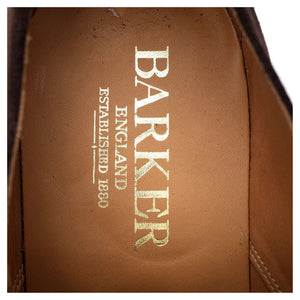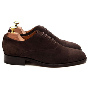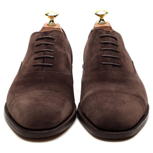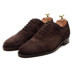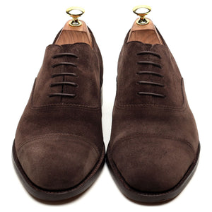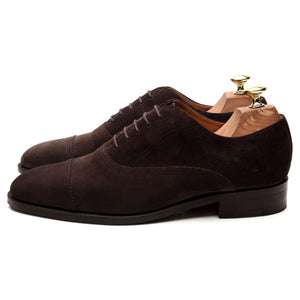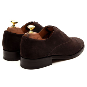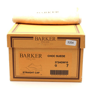 Barker 'Straight Cap' oxford in dark brown suede. Note, these show signs of being tried on.