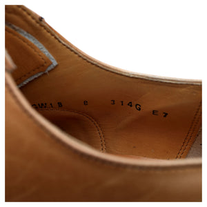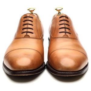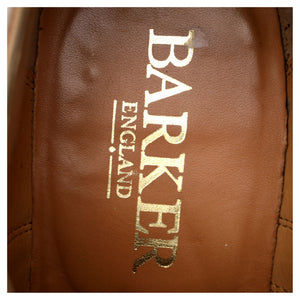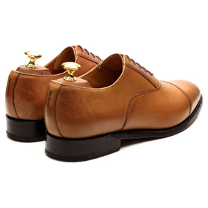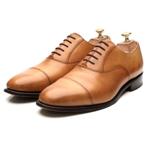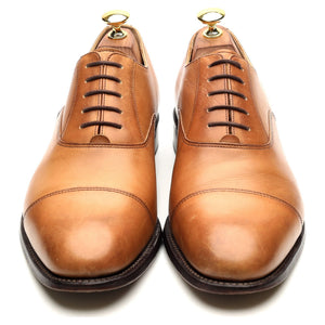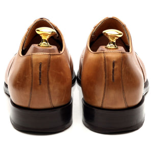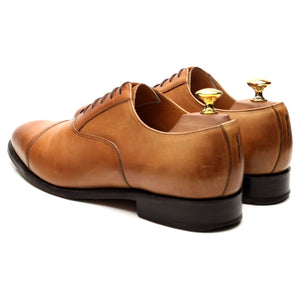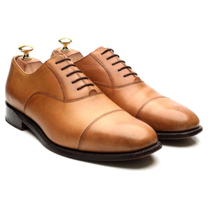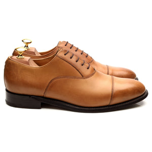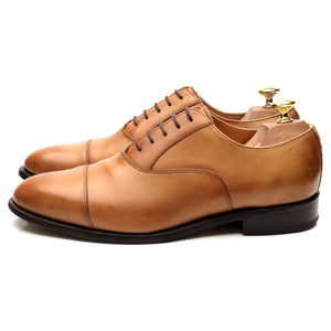 Barker cap toe oxford in tan brown calf. In excellent used condition, showing minor signs of wear.