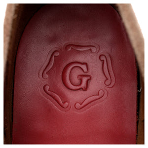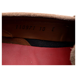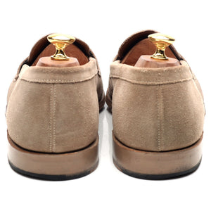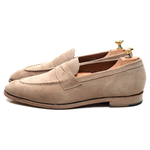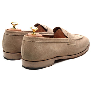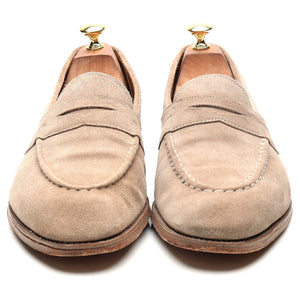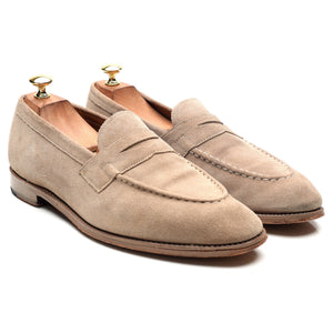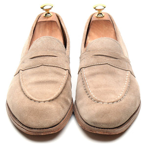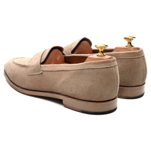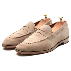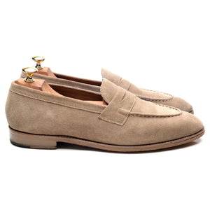 Grenson 'Lloyd' unlined penny loafer in beige suede. In very good used condition, showing moderate signs of wear