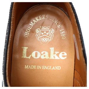 Loake '758' brogues in black polished calf. In excellent used condition, with minor signs of wear.