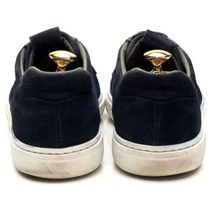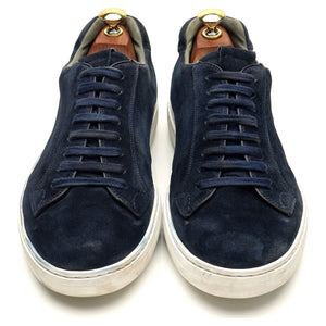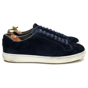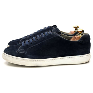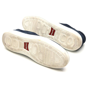 Church's 'Boland' sneakers in navy blue suede. In excellent used condition, showing minor signs of wear.