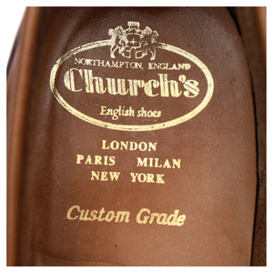Church's penny loafers in brown calf. In excellent used condition, showing minor signs of wear.